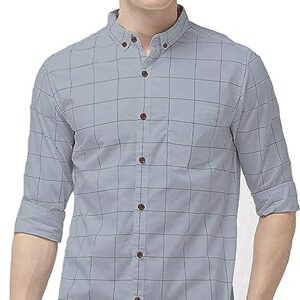 IndoPrimo Men’s Cotton Casual Regular Fit Checks Shirt for Men Full Sleeves