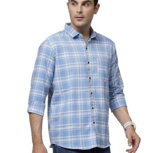 ELYYORK Men’s Cotton Full Sleeve Regular Fit Casual Checkered Shirt Light Blue