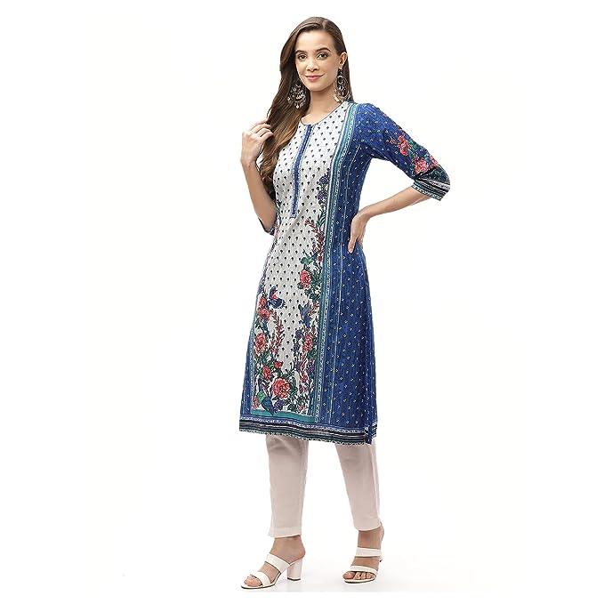 BIBA Printed V Neck Flared Womens Kurta
