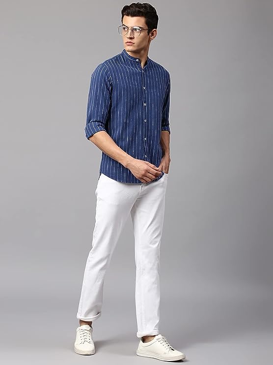 / Dennis Lingo Men’s Blue Slim Fit Cotton Casual Shirt