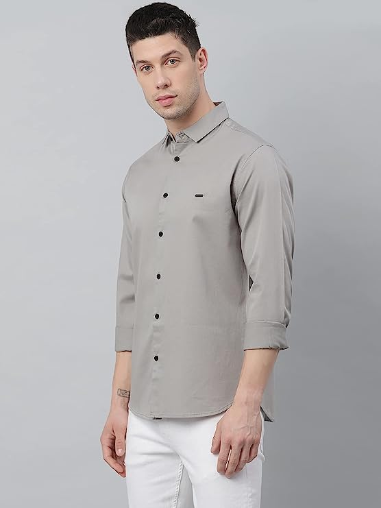 Dennis Lingo Men’s Cotton Solid Slim Fit Casual Shirt with Pocket, Full Sleeve Shirt for Formal & Casual Wear