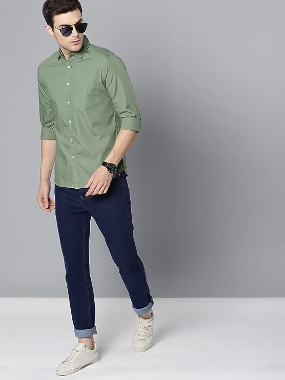 / Dennis Lingo Men’s Solid Slim Fit Cotton Casual Shirt with Spread Collar & Full Sleeves