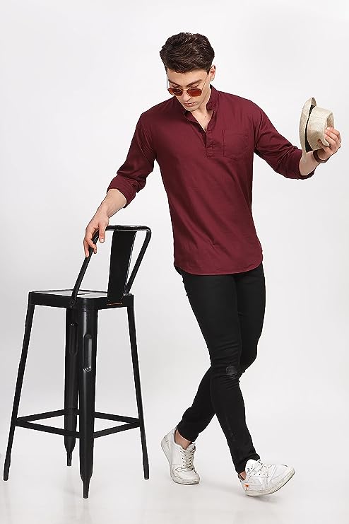 Miraan Men’s Casual Cotton Short Kurta Shirt with Mandarin Collar (SIGSHORTKURTA)
